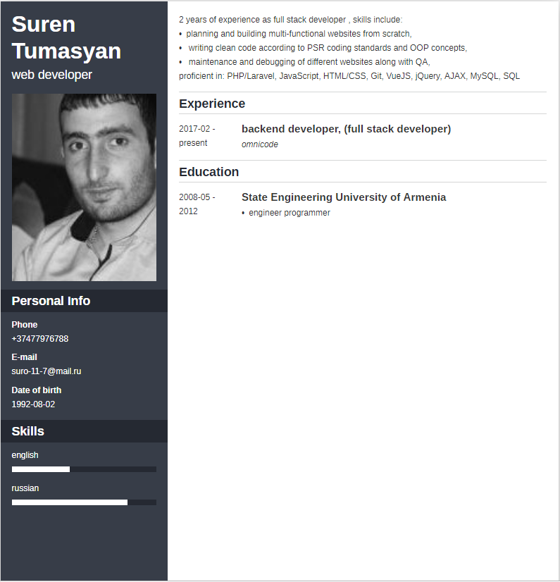 Resume Php/laravel